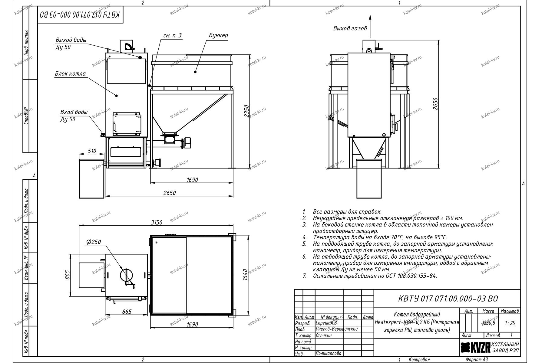 Конструкция автоматического котла на угле 200 кВт